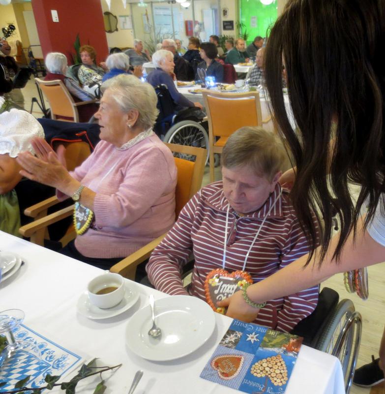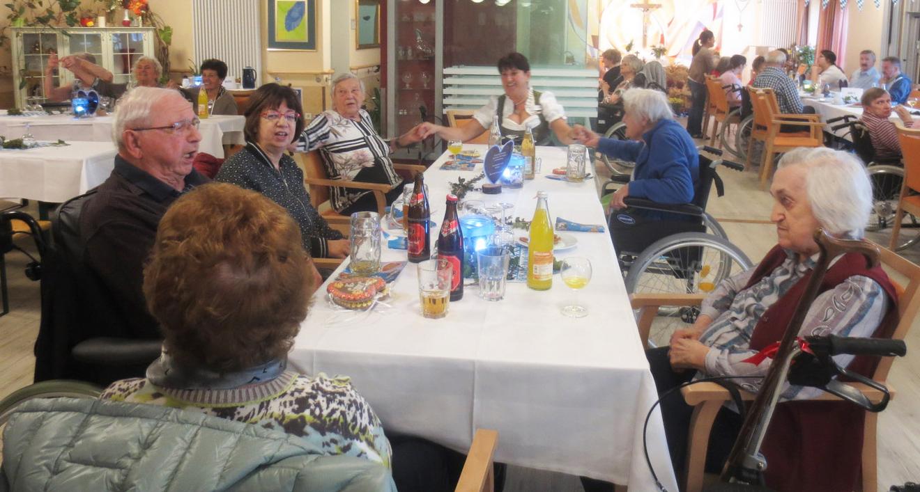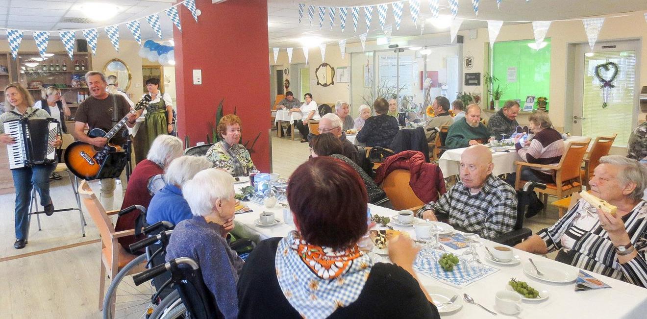 Musikalisch wurden wir am 25. Oktober zum ersten Mal bestens von Reinhard und Barbara – einem Teil vom „Basalt-Express Parkstein“ unterhalten. Als Überraschung gab es für jede Bewohnerin und jeden Bewohner ein Lebkuchenherz, worüber sie sich herzlich freuten. Abends wurden unsere Bewohner mit Zoigl vom Fass, Gänsebrust, Blaukraut und Spouzn und Hirschgulasch mit Spätzle verwöhnt. Reinhard und Barbara mussten noch einige Zugaben geben, bis dieser zünftige Tag seinen Abschluss fand. Wir freuen uns auf ein ganz bestimmt nächstes Mal mit den Beiden.